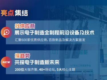 NEPCON ASIA汇聚来自全球超过600+全球电路板组装、智慧工厂、半导体封测、汽车制造,触控显示等跨行业先进生产设备及技术供应商,全面展示创新产品和先进电子电路制造技术,是企业学习新技术,发掘新产品,探索新趋势的电子制造行业盛会。